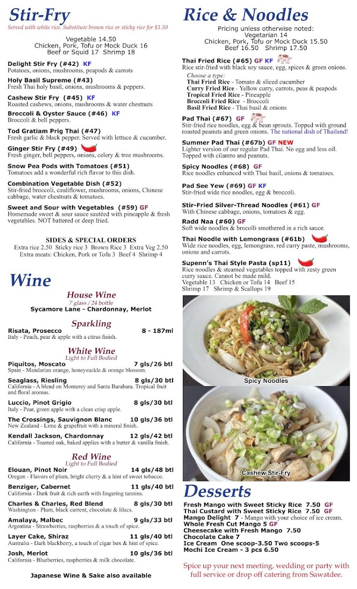 Welcome to Sawatdee Maple Grove, a gem located in the heart of Maple Grove, MN. Renowned for its authentic Thai flavors, the menu offers a delightful array of dishes that promise to take your taste buds on a journey. Begin your meal with their crispy Fried Sawatdee Spring Rolls, filled with a tempting mixture of beef, silverthread noodles, and fresh vegetables. For a lighter option, try Supenn's Fresh Spring Rolls, served with shrimp and chicken.